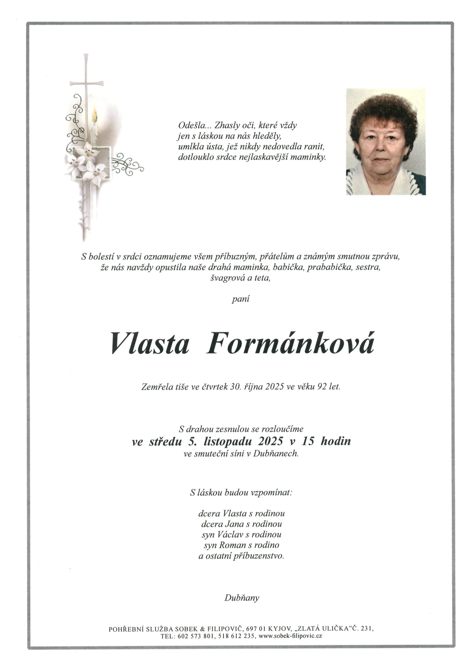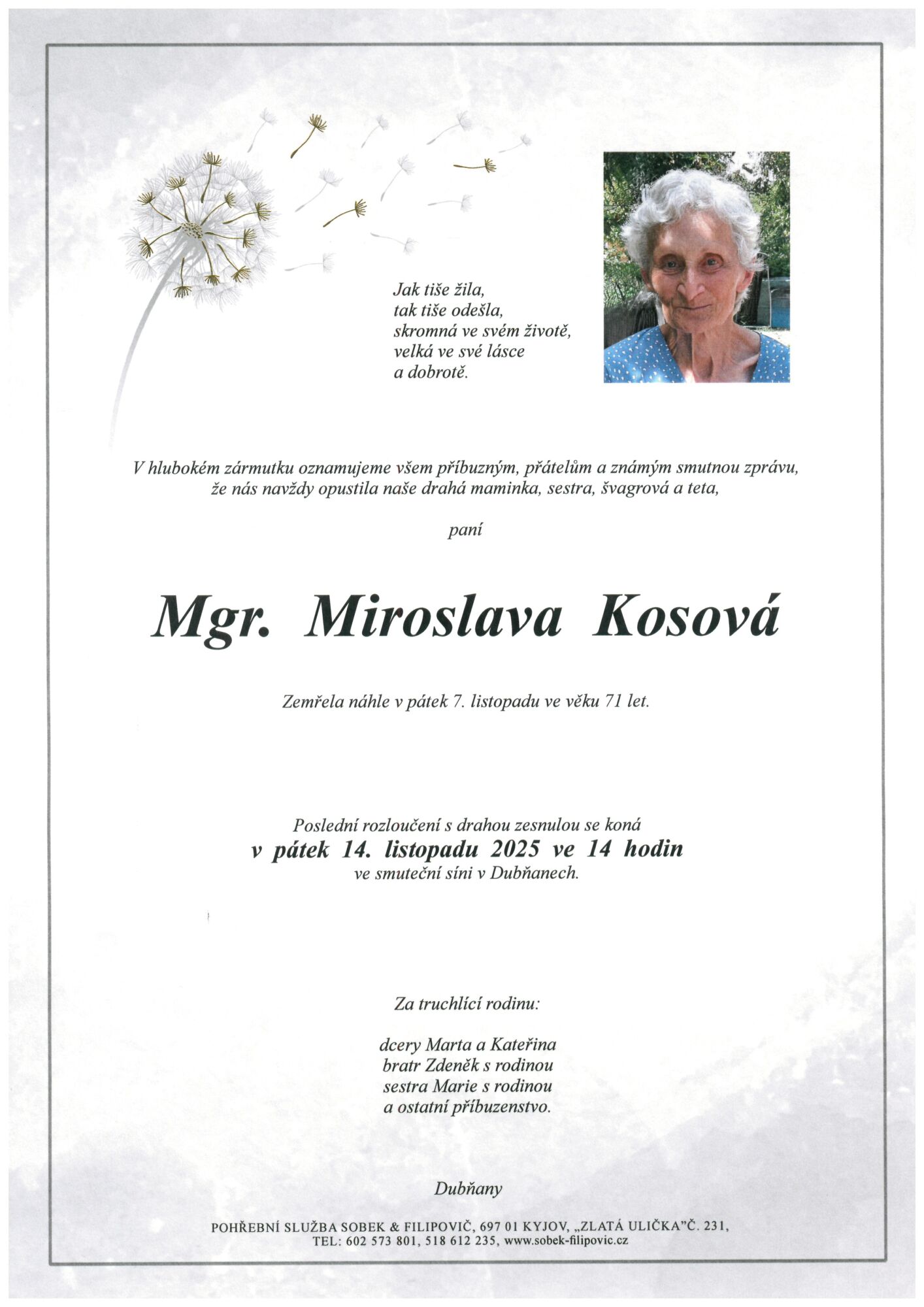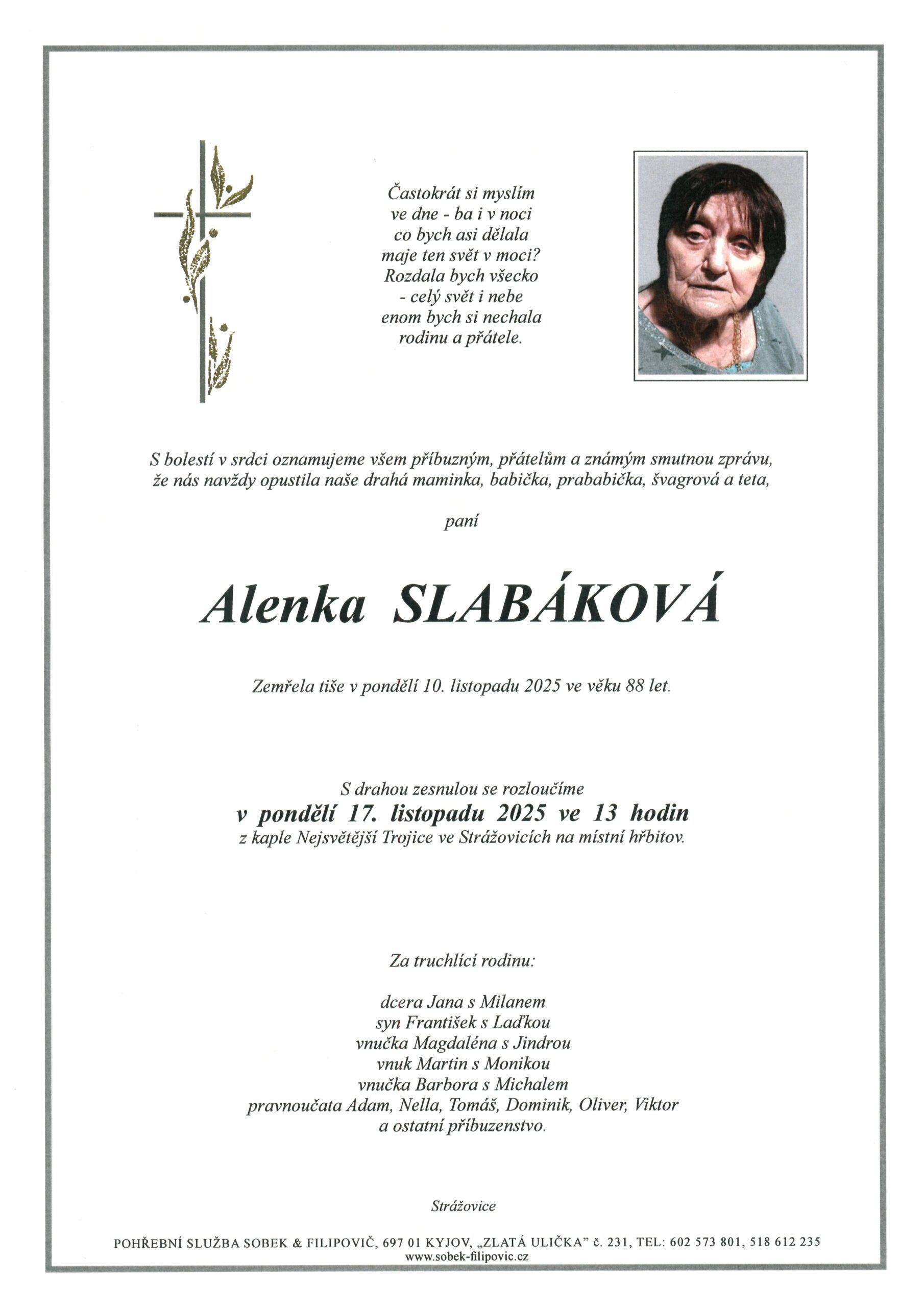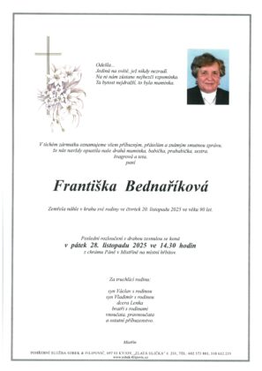 | Františka Bednaříková | 1935 | 28. 11. 2025, 14:30 | Mistřín |