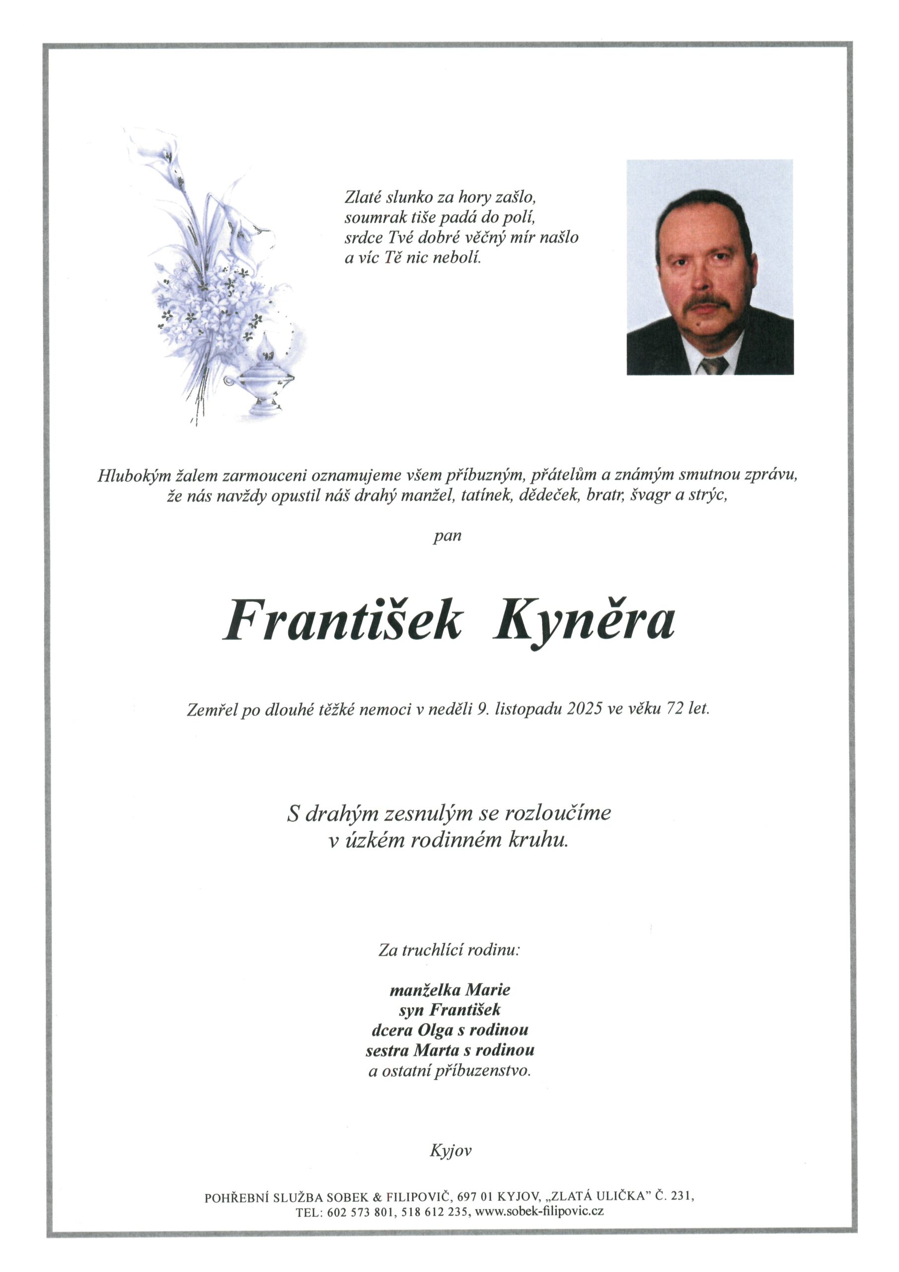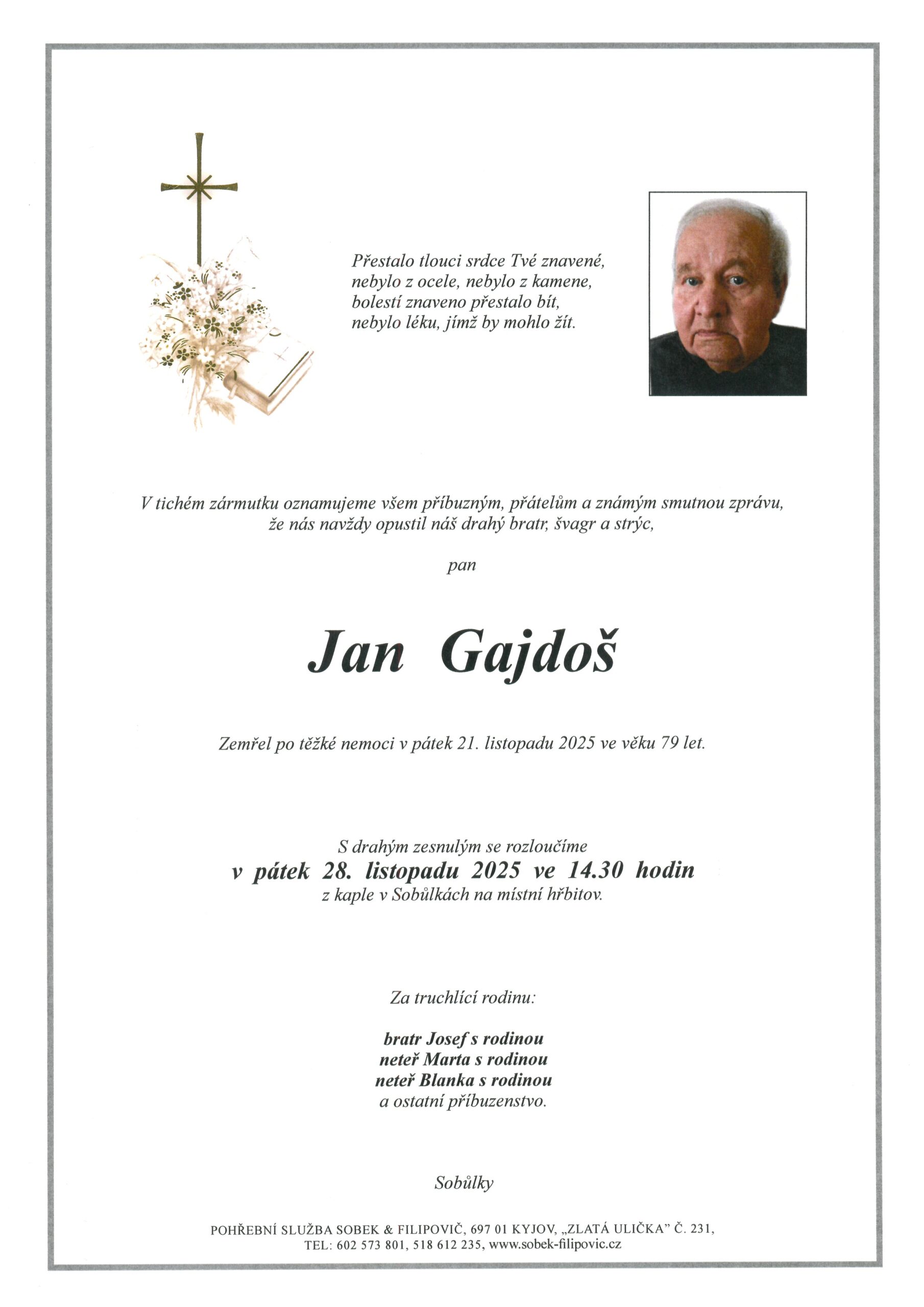 | Jan Gajdoš | 1946 | 28. 11. 2025, 14:30 | Sobůlky |