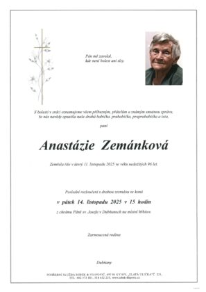 | Anežka Závodská | 1942 | 29. 11. 2025, 13:00 | SS Ždánice |