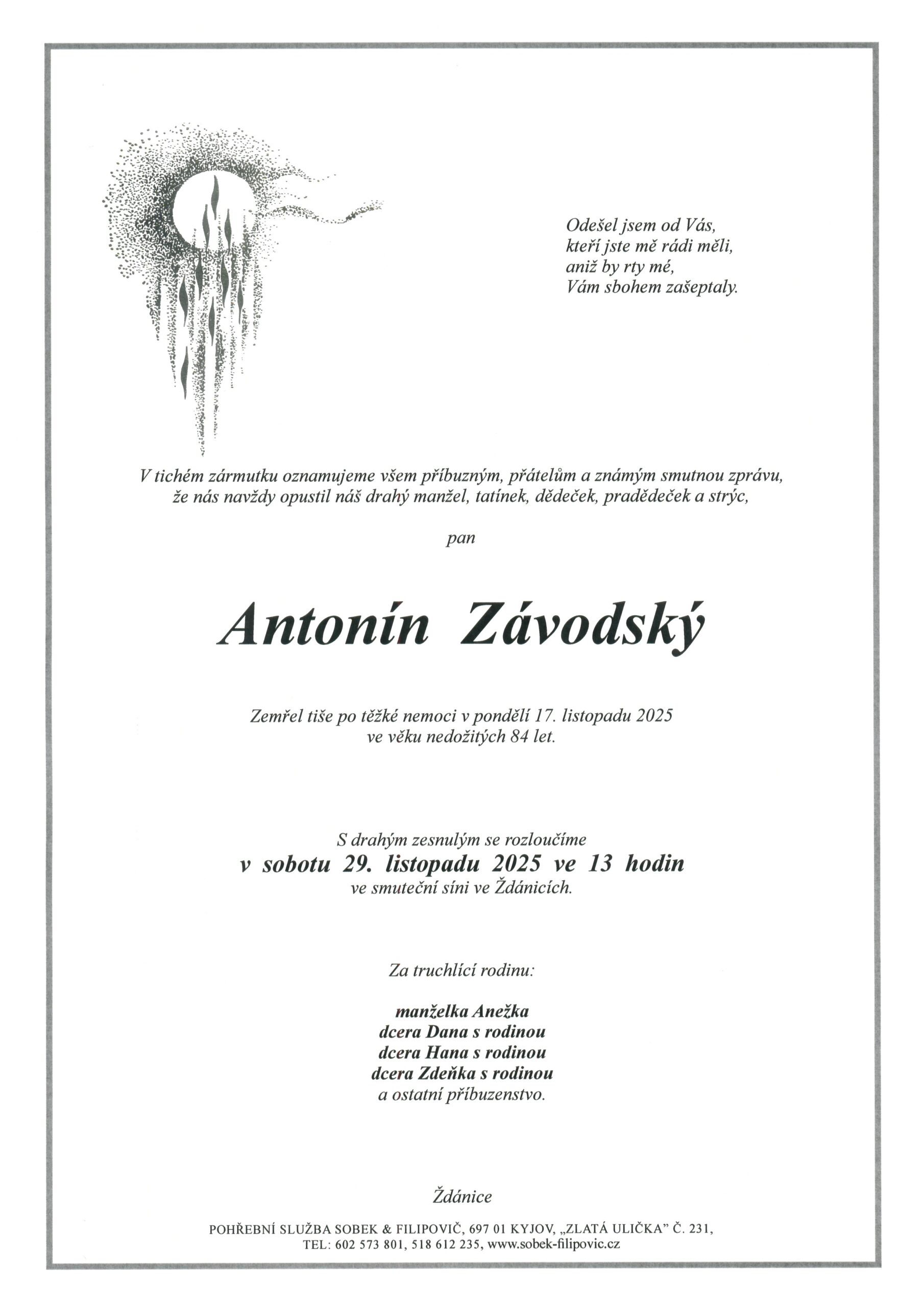| Antonín Závodský | 1941 | 29. 11. 2025, 13:00 | SS Ždánice |