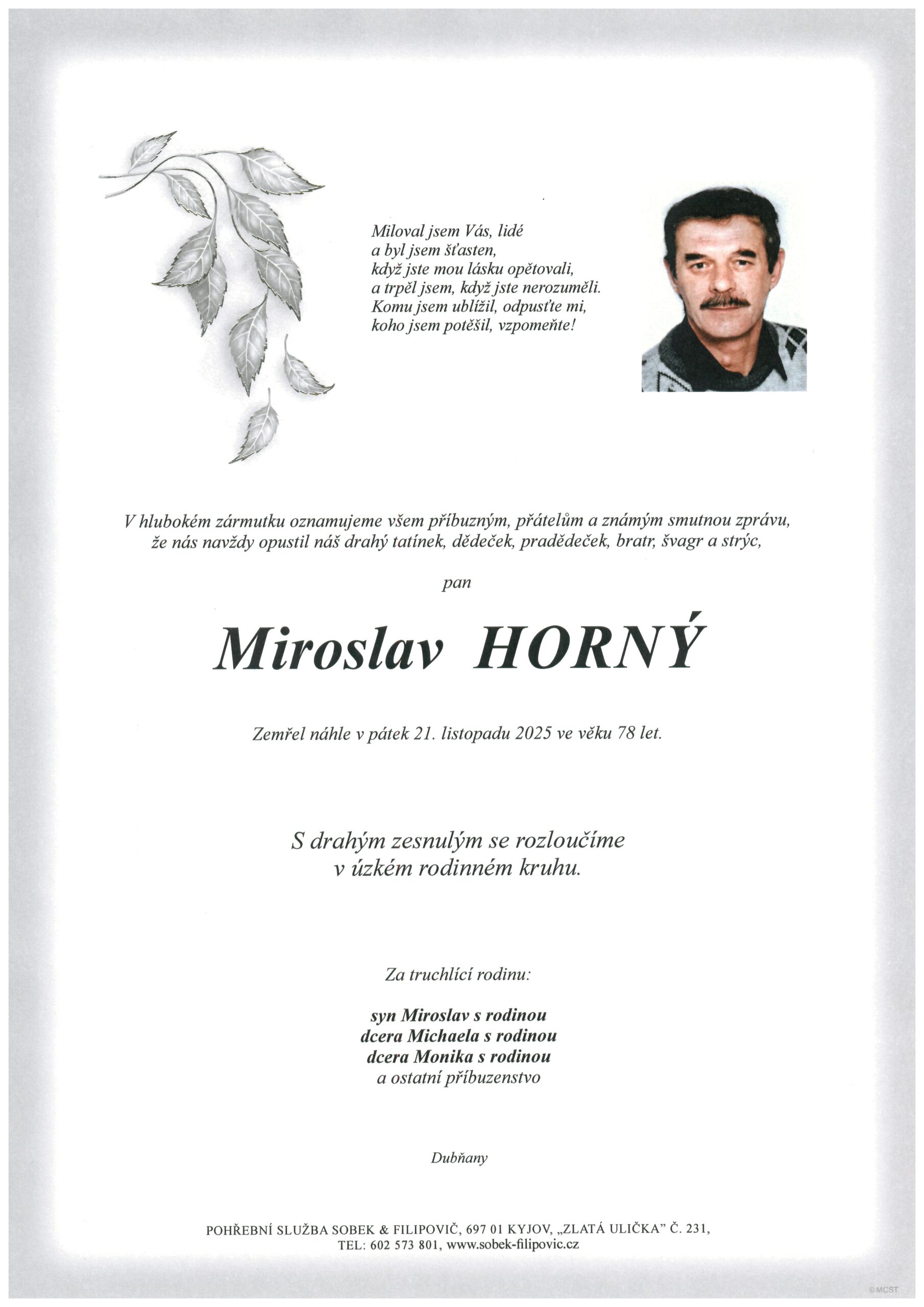 | Ing. Pavel Vrtílek | 1942 | 27. 11. 2025, 15:00 | Hovorany |