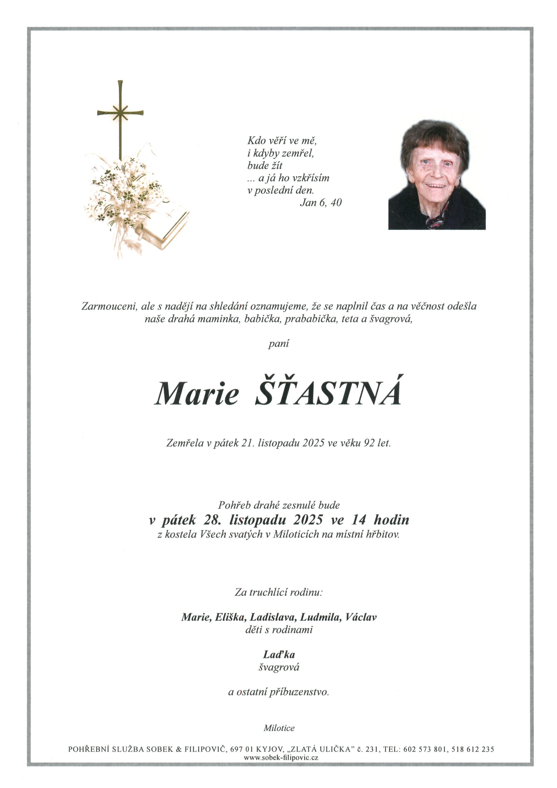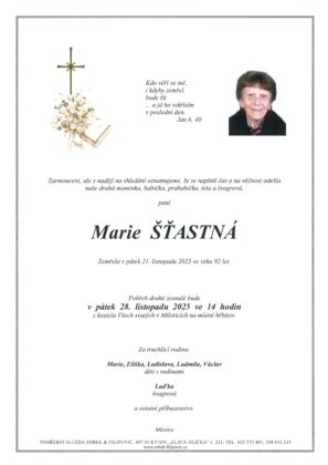 | Marie Šťastná | 1933 | 28. 11. 2025, 14:00 | Milotice |