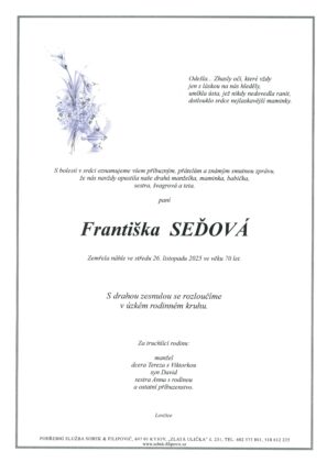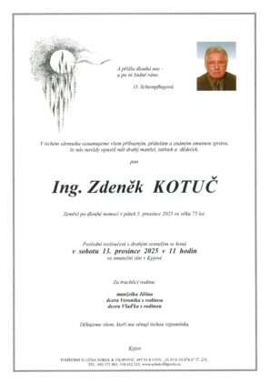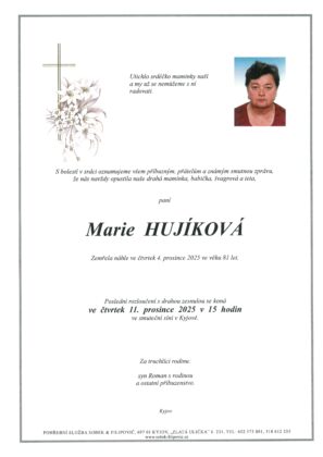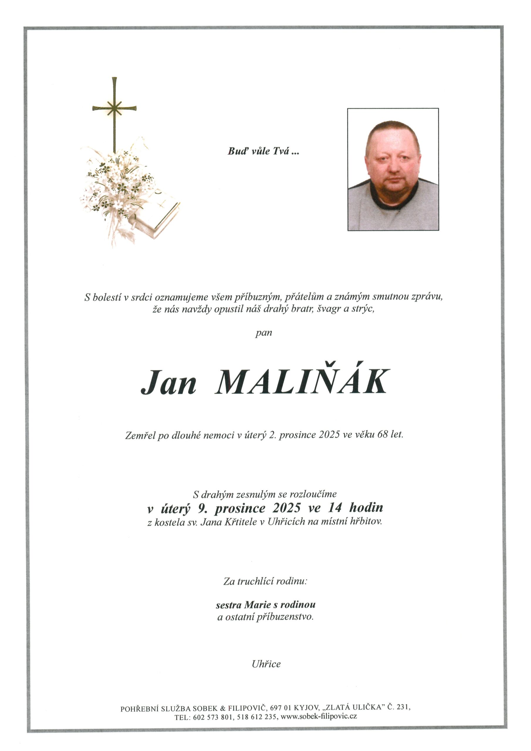 | Jan Maliňák | 1957 | 9. 12. 2025, 14:00 | Uhřice |