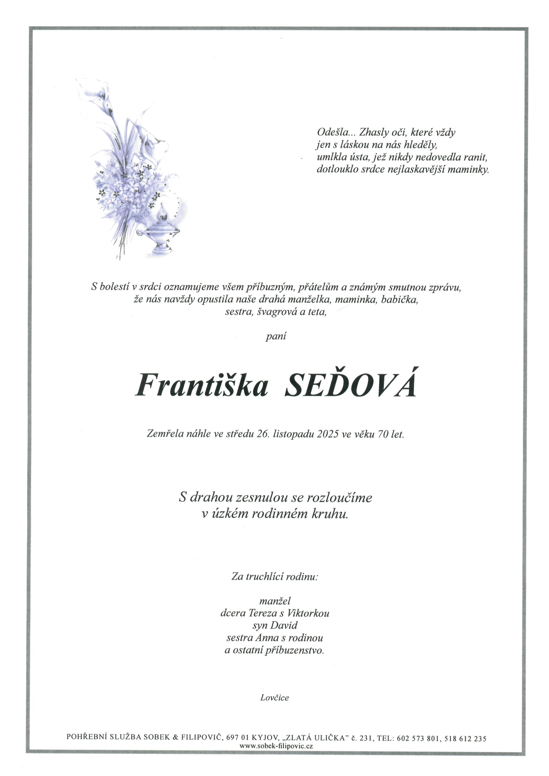 Aktuální smuteční oznámení
