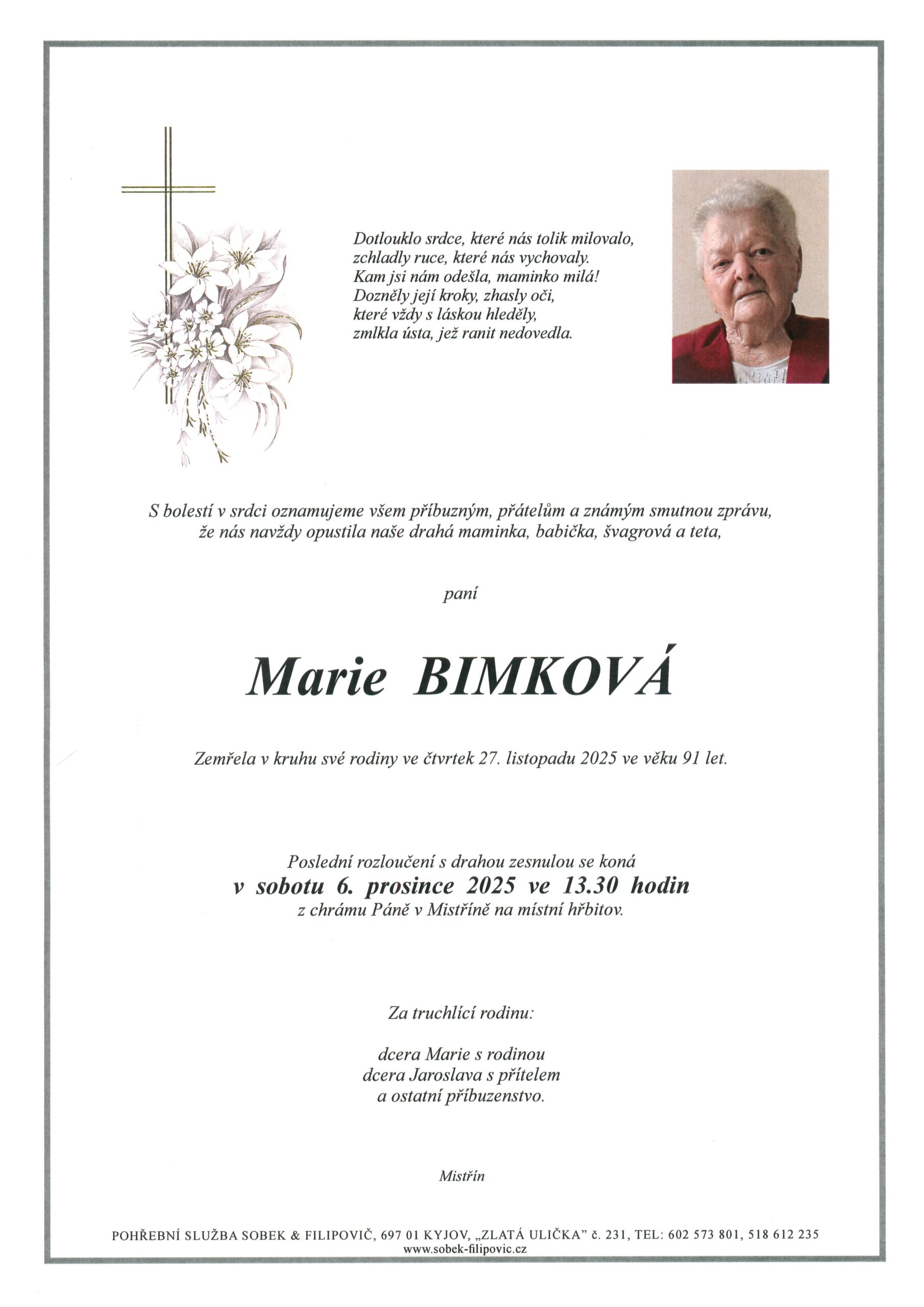 | Marie Bimková | 1934 | 6. 12. 2025, 13:30 | Mistřín |