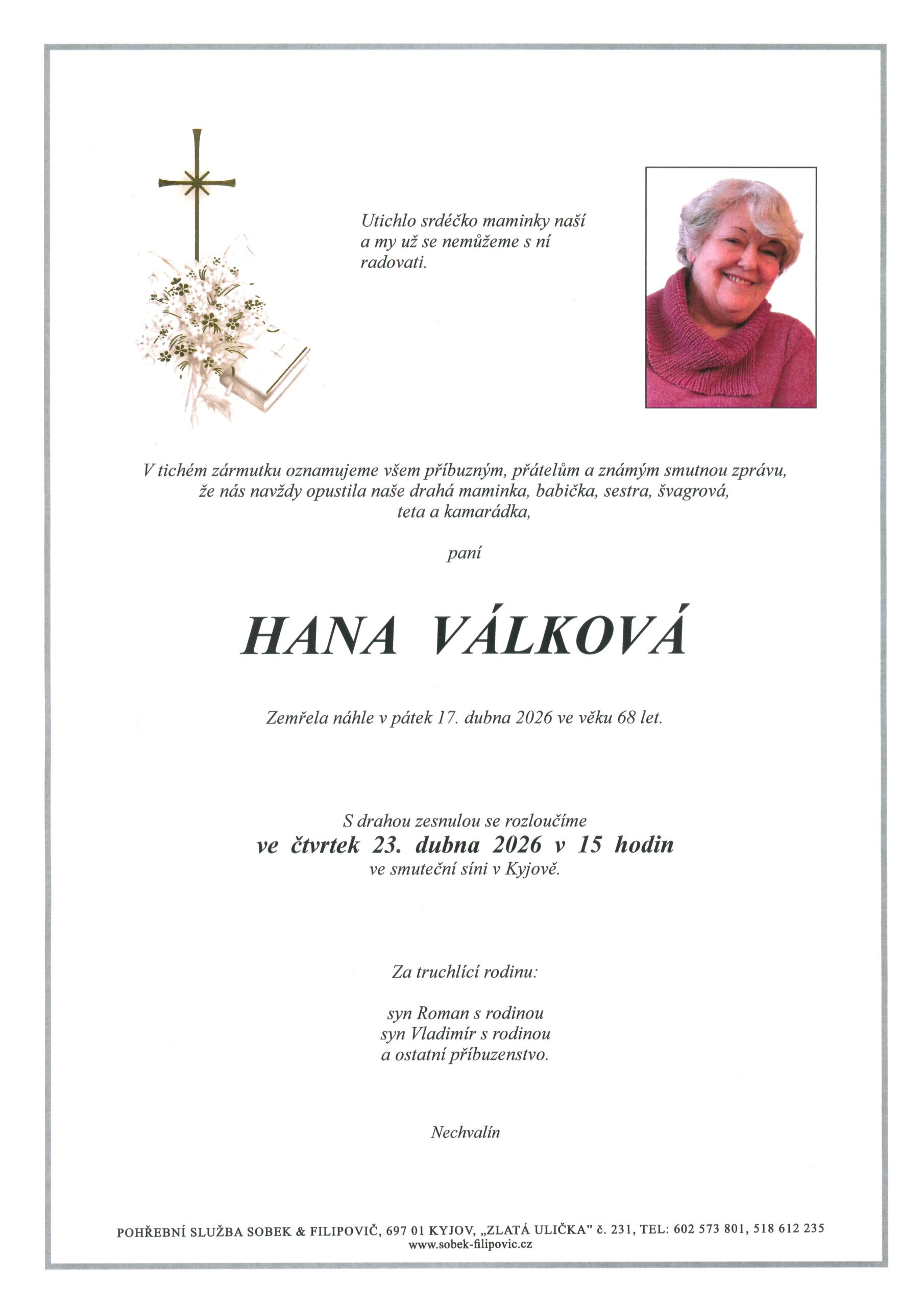 | Hana Válková | 1957 | 23. 4. 2026, 15:00 | SS Kyjov |